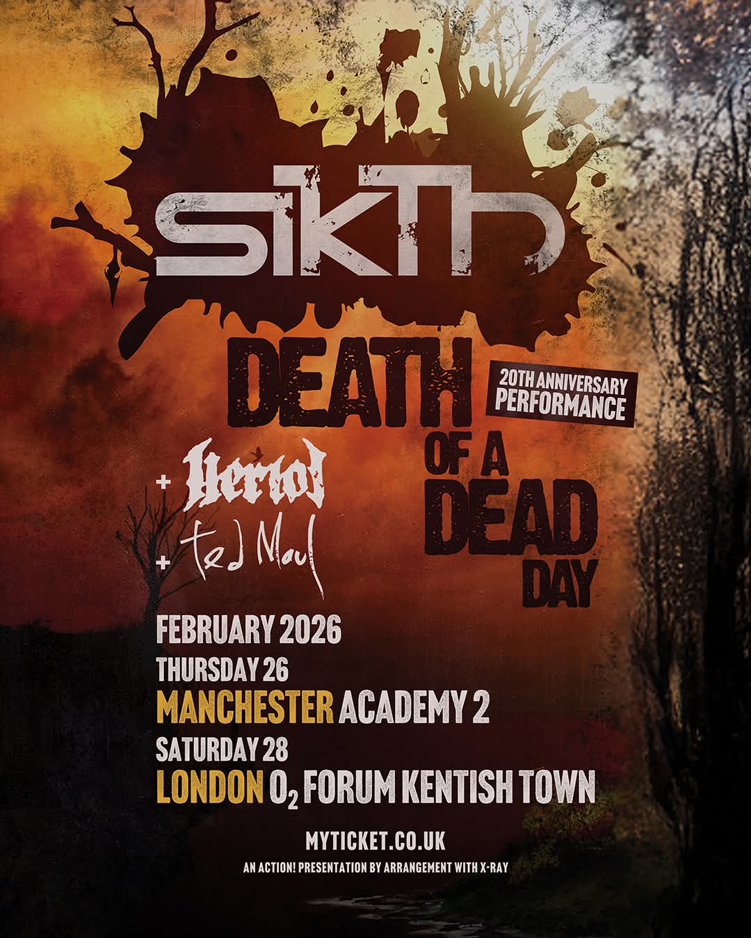 Reading like a script of a low budget straight to streaming platforms movie in which SikTh frontman Mikee Goodman enters a crypt and resurrects a corpse with the combination of occult ritual and adrenaline injection, after twenty years London Death Metal act Ted Maul [8/10] are on stage at the O2 Forum in Kentish Town. In 2026 the band are a five piece who include original members in guitarist Luca Grandi, formerly of Dripback and vocalist Jeremy Gomez of Red Method. They look like a crossover Thrash crew who are itching to bust out some classic Hardcore cuts but instead burn the fuse of a fistful of dynamite from their one and only album “White Label“. As musicians they’re of course all seasoned veterans with many bands under their collective bullet belts and put on a show of livewire energy and old school riffs, Grandi looking like he’s stepped out of Cro-Mags or Suicidal Tendencies with his axe wielding stage antics. They’re playing to a filling venue and a crowd who don’t necessarily know who they are but by the end they’ve won everyone over with Gomez brutal roars and James Perry’s unstoppable rhythmic battery.