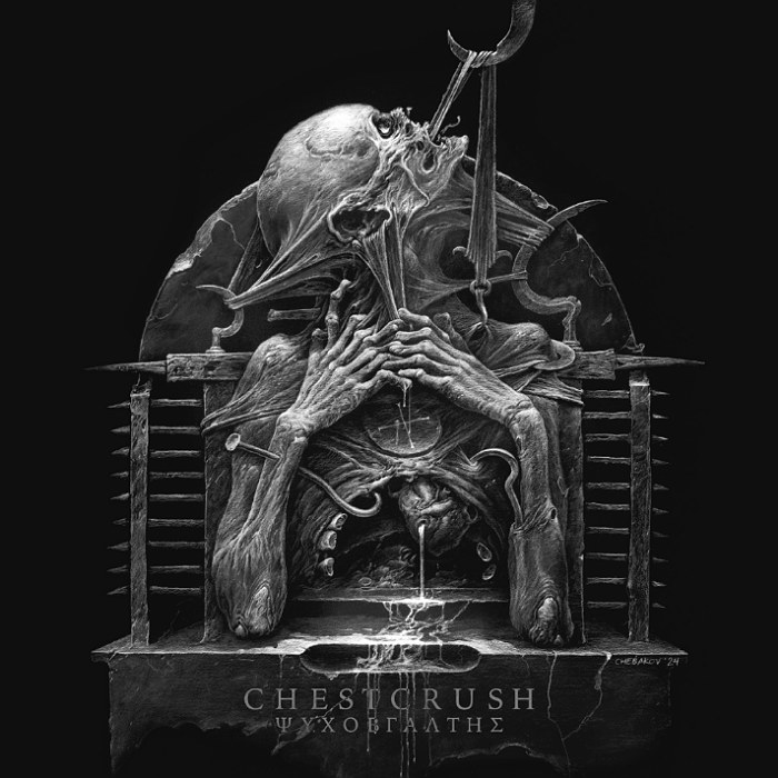 A month after the arrival of first taste “Every Single Word“, Edinburgh Blackened Death Metal purveyors Chestcrush have announced their sophomore album “ΨΥΧΟΒΓΑΛΤΗΣ” (Greek for “Soil Extractor“) will be rearing it’s ugly head on 4th April. Delving into nihilism and social critique, channeling the thought-provoking, introspective lyrics through chaotic riffs and dark, atmospheric layers, it