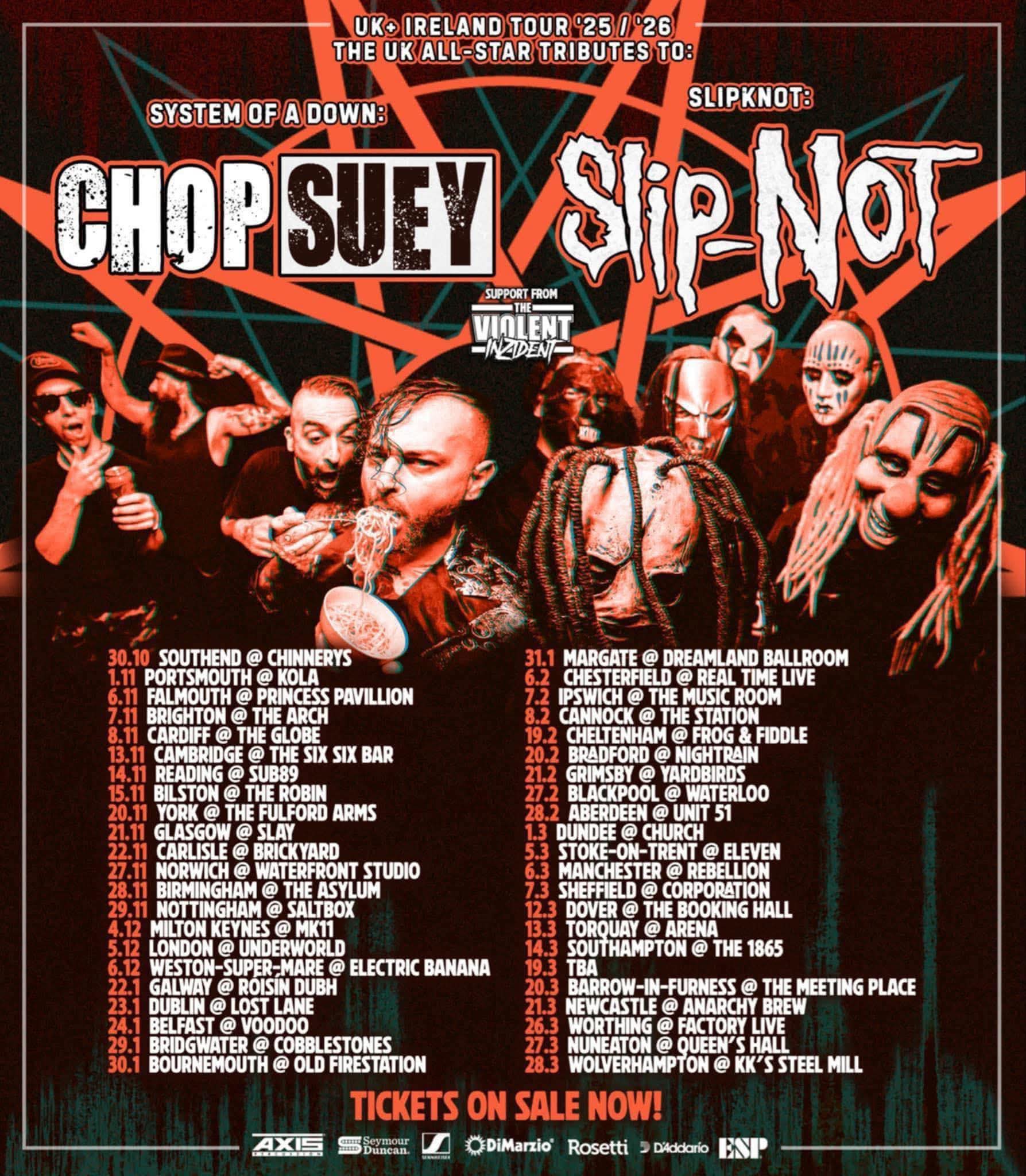The event organisers warn us to “get ready for a night of chaos, nostalgia and unmatched energy” with Chop Suey and Slip-Not on a UK and Ireland co-headlining tour and as it happens, tonight ends up being exactly that. Personally this writer isn’t usually one for tribute bands but will freely admit to having enjoyed